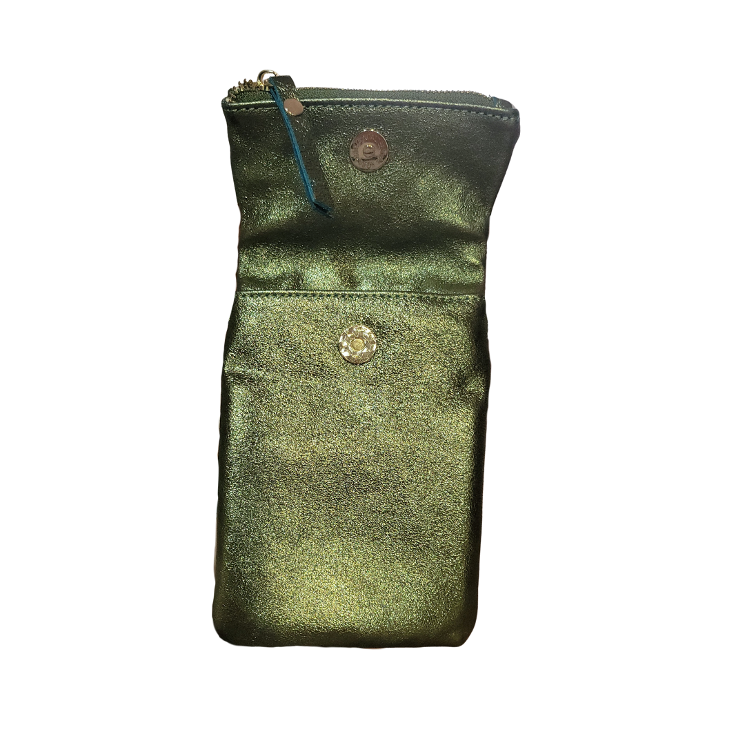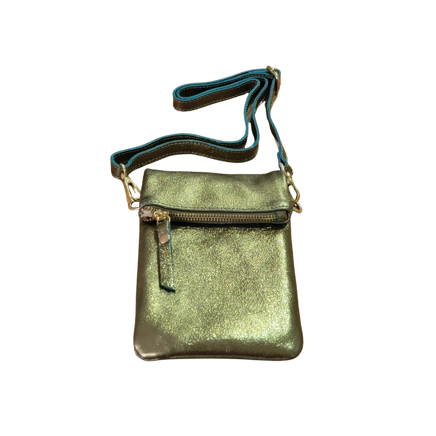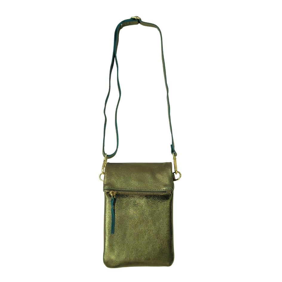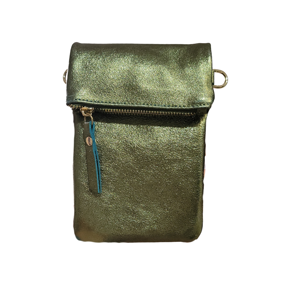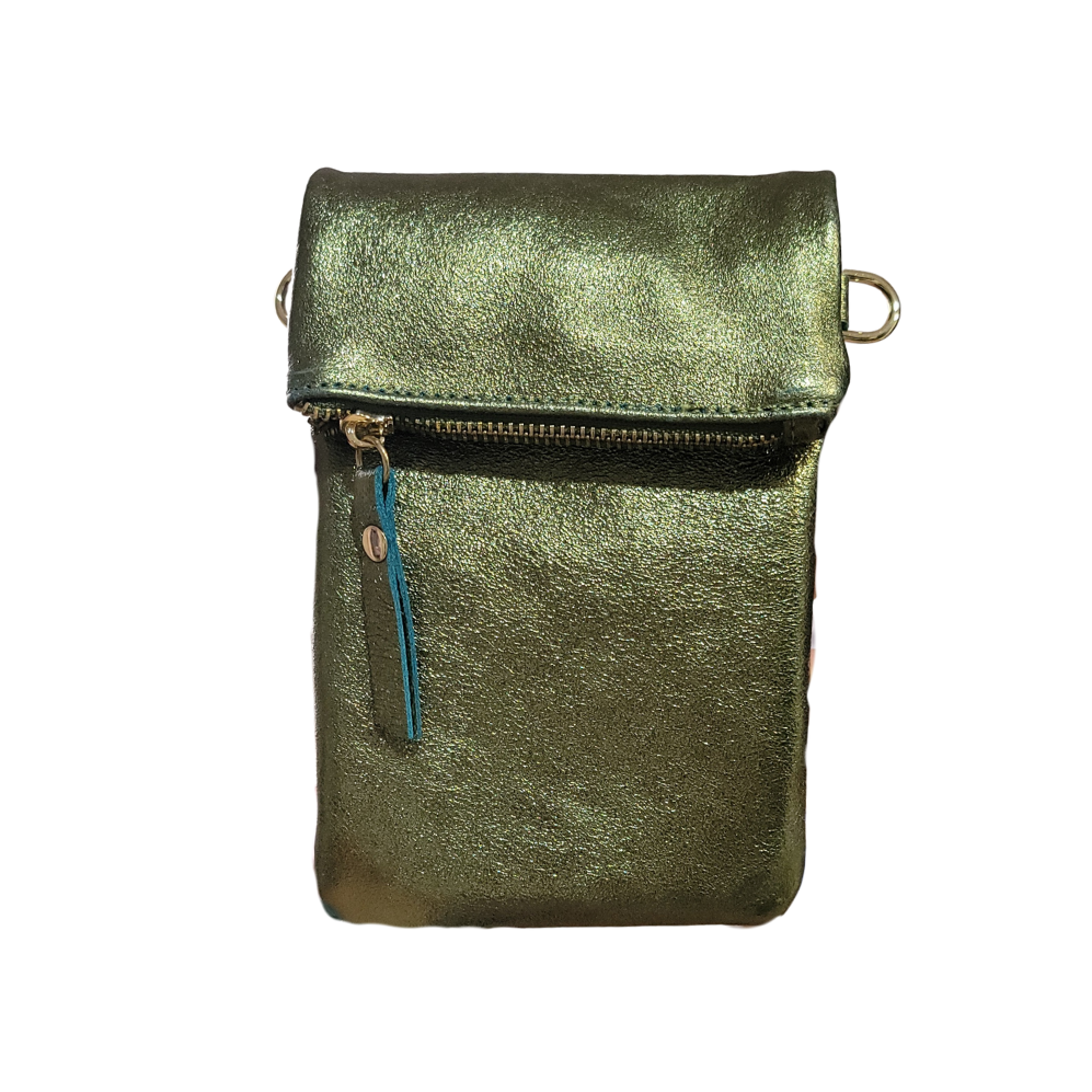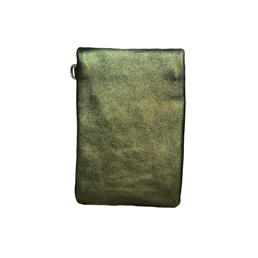 This Mini Crossbody is designed for days when elegance means traveling light. Crafted in a metallic olive finish, this petite piece adds a subtle shimmer to any outfit. The zip closure keeps all your belonging safe and adjustable strap make it effortlessly functional while staying unmistakably chic. Perfect for city strolls, café dates, and hands free moments of style. A small bag with big attitude.